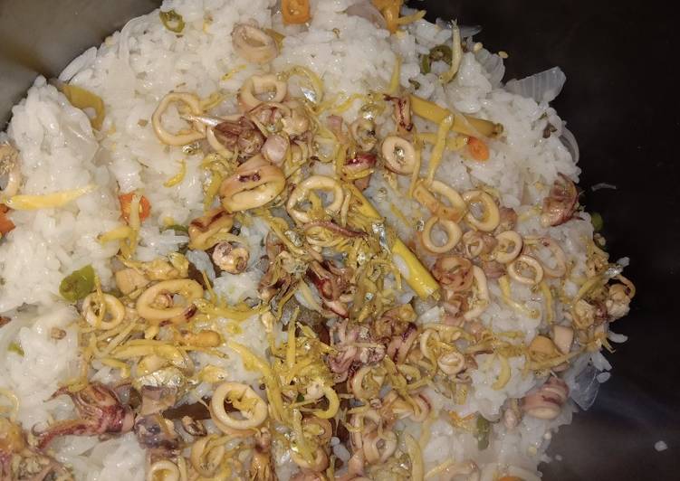 Cuci beras, masukan bumbu potong tambahkan air seperti memasak nasi biasa