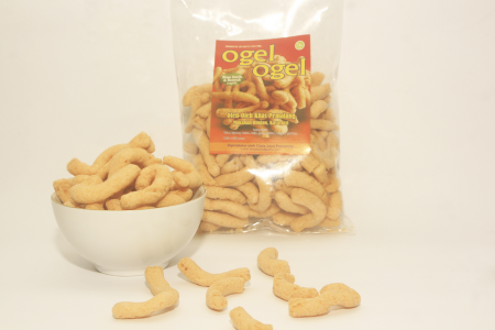 Ogel-ogel diperkenalkan ke khalayak banyak oleh UD Cipta Jaya di Blok H1 Perumahan Kaligelang sejak awal 2000an. Selain dipasarkan di daerah sendiri, Ogel-ogel ini banyak dicari orang sebagai oleh-oleh. Menurut Hj. Isom Widiastuti selaku pengelola usaha yang memproduksi Ogel Ogel, bentuk dan ukurannya yang tidak terlalu besar itulah cikal bakal nama penganan cemilan khas buatannya itu. Selain bahan baku tepung beras dan telur, dalam pembuatannya juga ditambahkan bumbu. Tidak ada unsur bahan pengawet maupun zat pewarna. Ogel Ogel dalam kemasan bisa bertahan hingga 3 bulan. Masa kadaluarsa yang relatif panjang karena semua bahan yang digunakan berkualitas. Dipilih bahan yang bagus, baik untuk tepung beras, telur, bumbu maupun minyak. Untuk memproduksi sekitar 80 kg ogel-ogel setiap harinya Hj. Isom Widiastuti dibantu 6 orang karyawan pengolahan dan 2 orang pemasaran. Ogel Ogel yang kian dikenal saat ini juga kerap digunakan sebagai penganan pengganti roti untuk berkat hajatan.