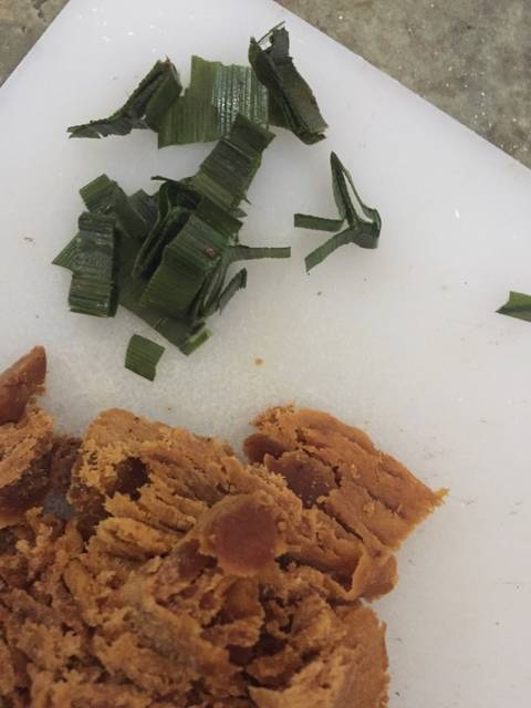 2. Siapkan irisan gula merah dan daun pandan