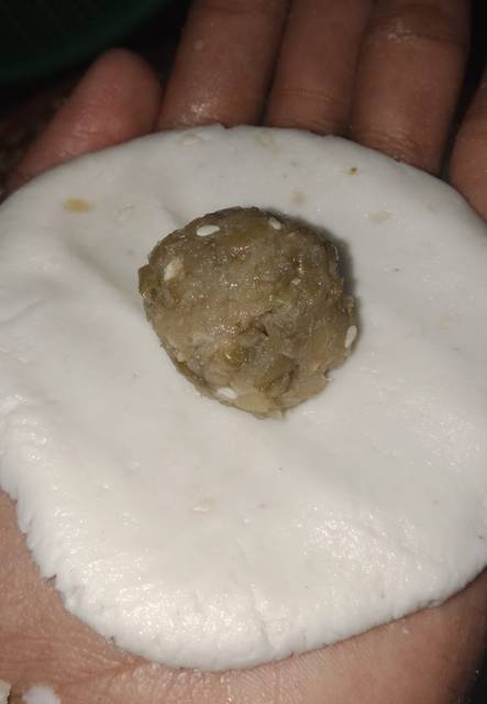 Campurkan kacang tumbuk,gula,vanili,garam,kmudian bentuk bulat kecil2,sbesar kelereng, untuk isian,lakukan sampai habis.