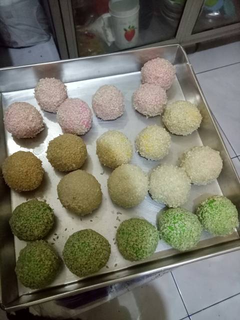 Setelah semua adonan onde2 diisi dan dibulatkan lalu celupkan pada air kemudian lumuri dengan wijen hingga merata,,