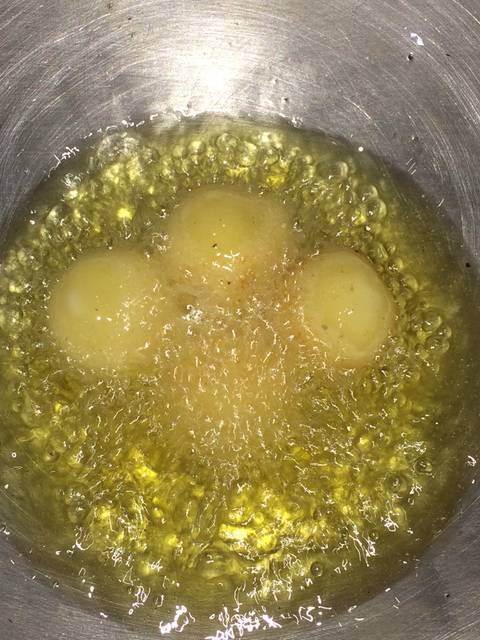 Next, terakhir goreng dg minyak panas yg cukup banyak dan pake api kecil sajoo yoo biar mateng luar dalem. Cukup balik sekali aj