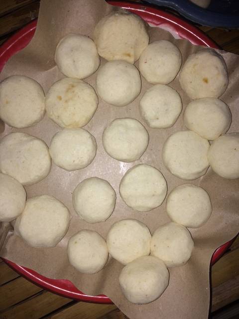 Okee sekarang waktunya bikin adonan jd bulet2 aj yah. Kepal2 biar kenceng isi pake gula merah td trus kepal2 lg buat jd buletðŸ˜Â