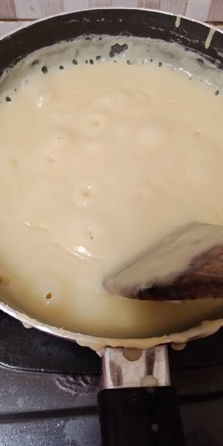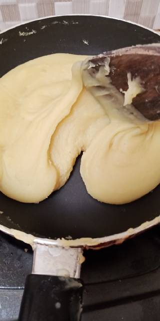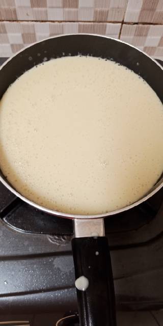 Kukus kacang hijau kupas dan kentang, lalu blender kacang hijau kupas bersama santan, garam, vanili, gula, susu kental manis... Sementara kentang haluskan dan sisihkan