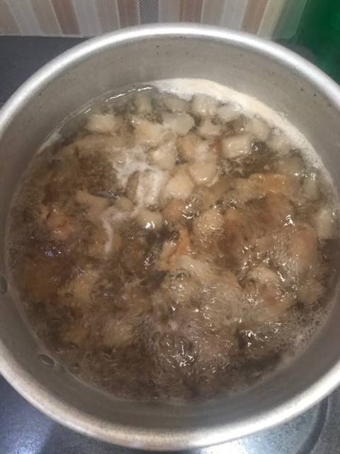 Cuci bersih dan rebus kikil agar bau empuk dan bau amisnya hilang
