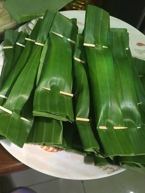 12. 4 helai daun pisang (saya potong ukuran lebih besar sedikit dari setengah lembar ukuran buku tulis)