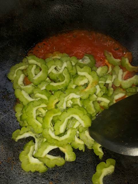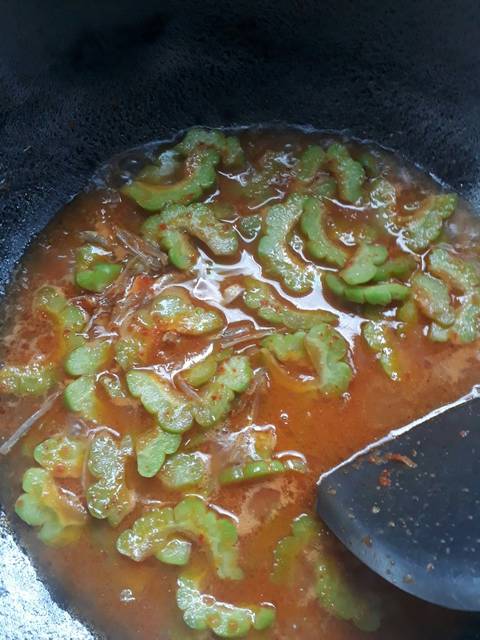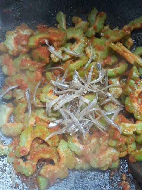 Tumis bumbu, masukkan pare, aduk
