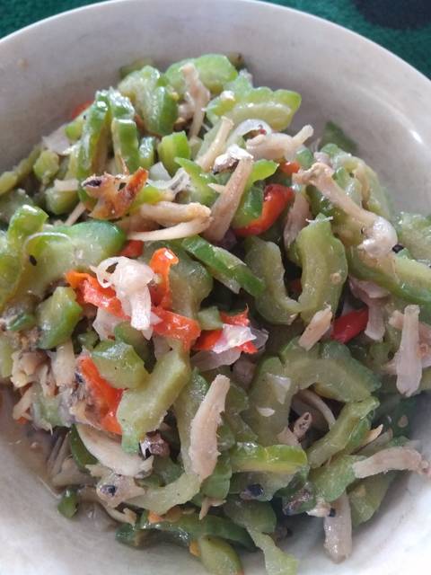 Kemudian tumis bumbu setelah wangi masukkan pare tambahkan garam,gula dan penyedap rasa masak hingga matang sblm d angkat masukkan teri Medan yg SDH d goreng sbntr