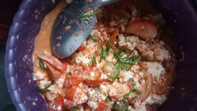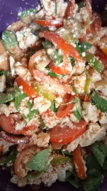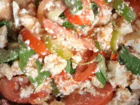 Bahan: 1 buah tomat, potong dadu 2 ekor ikan tongkol ukuran sedang (1/2kg) 1/2 bks bumbu marinasi bubuk 1 sdt bawang putih Secukupnya garam Secukupnya gula 7 siung bawang merah, iris 5 buah cabe rawit, iris 2 batang sereh, ambil bagian putihnya, iris 3 lembar daun jeruk, iris tipis-tipis 1 bks terasi ABC Minyak untuk menumis Secukupnya air Cara memasak: Cuci bersih ikan tongkol. Taburi bumbu marinasi desaku, garam secukupnya, air 2 sdm ke ikan tongkol. Siapkan bahan-bahan. Iris tipis bawang merah, daun jeruk, seret, cabe rawit. Kukus ikan tongkol selama 10 menit. Lapisi dengan daun pisang atau daun kunyit. Boleh jg tidak d lapisi. Setelah ikan di kukus, goreng ikan. Tumis bawang merah dan bahan lainnya. Masukkan terasi yg telah dihancurkan. Setelah matang, masukkan ikan yang telah digoreng. Aduk hingga rata. Sajikan dengan nasi hangat. Sumber: https://cookpad.com/id/resep/24995999?ref=search&search_term=dabu+dabu
