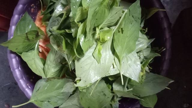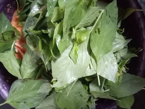 Tambahkan daun jeruk purut cincang, dan kemangi. aduk2 sampai rata, sisihkan.