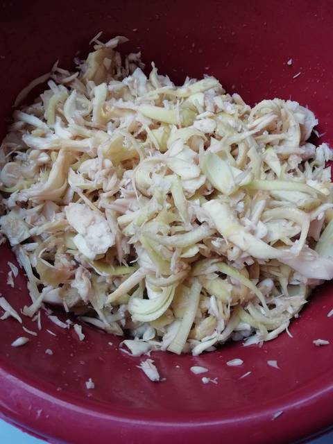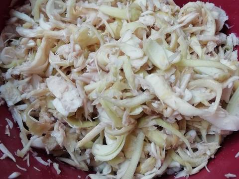 Cuci lg dg air mengalir, diperas sampai bener2 sepah, simpan di wadah terpisah.