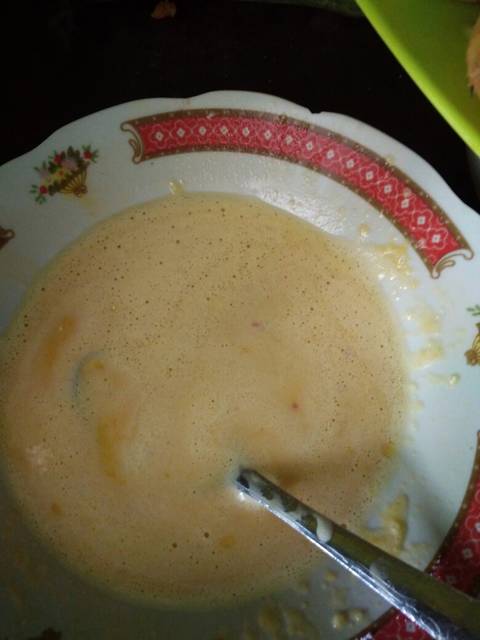 Celupan: Campur telur dengan tepung terigu kocok hingga rata