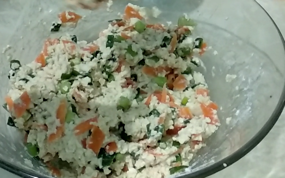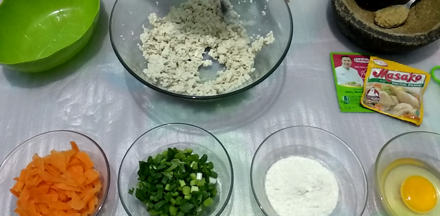 Setelah tahu halus kita masukan tepung terigu,bumbu halus sambil kita aduk sampai merata