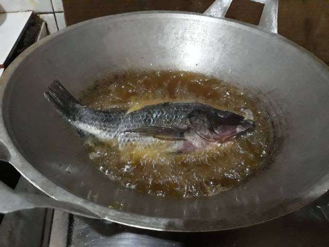 Goreng ikan dan telor ikannya dalam sampai matang. sisihkan