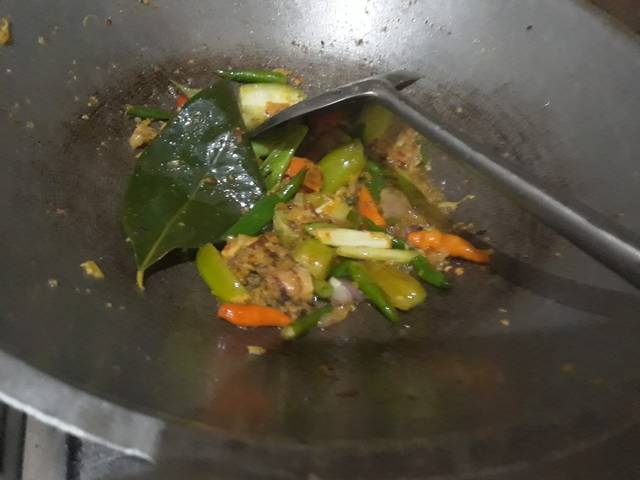 Haluskan bumbu-bumbu. kecuali cabe rawit merah, belimbing wuluh, daun salam, dan langkoas. tumis sampai harum