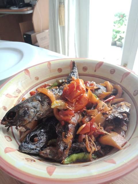 Tumis Duo Bawang hingga harum, masukkan cabe. Masukkan ikan.