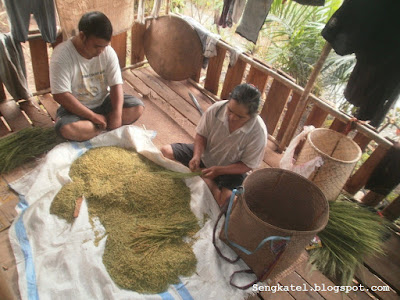 (Proses ngikis pare, melepaskan bulir padi dari tangkainya)