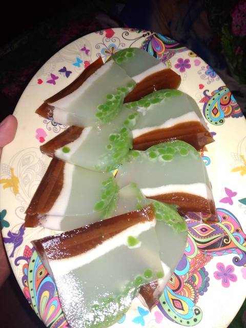 Setelah bahan pertama matang masukkan ke dlm loyang yg sudah berisi cendol biarkan sampai setengah mengeras