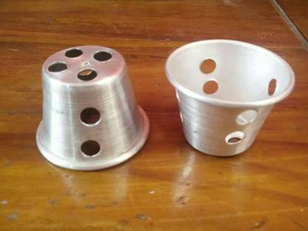 Masukkan adonan ke cetakan, jangan di tekan, masukkan adonan jangan terlalu penuh, tokok tokok cetakan agar padat, beri potongan gula merah di tengahnya.