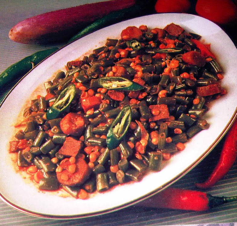 2. Tomat dibelah empat, buncis dan cabai hijau dipotong potong