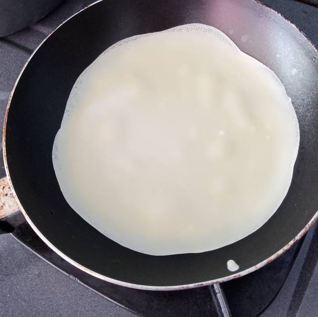 Jika teflon digoyang-goyangkan dan kulit sudah tidak lengket tandanya sudah matang angkat dan beri isian dan gulung
