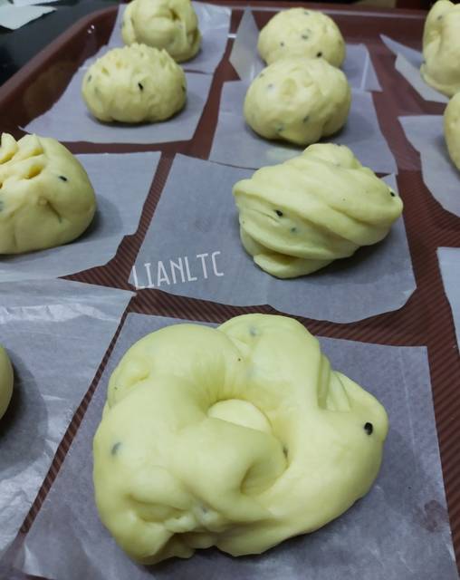 Campur semua bahan kering, aduk rata. Buat lubang di tengah dan tuang bahan biang. Air nya tidak harus dipakai semua, trgantung konsistensi adonan ya. Ulen 5 menit s/d tidak lengket di tangan, masukkan margarin dan lanjut ulen s/d kalis elastis (saya sekitar 20 menit)