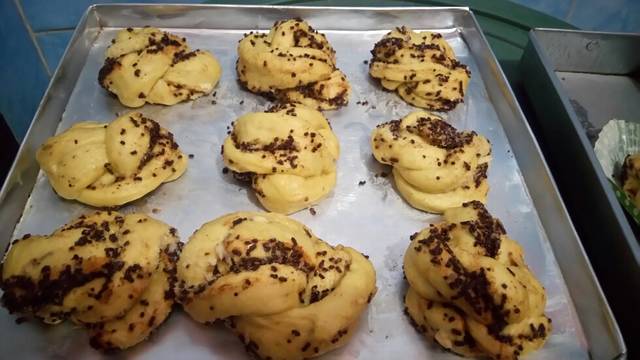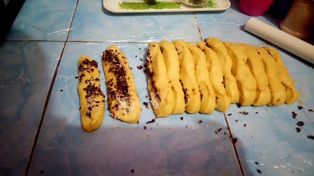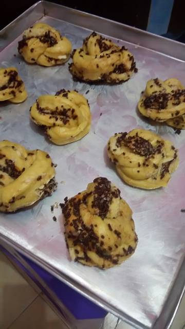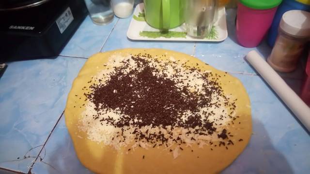 Setelah 1 jam proofing, tinju adonan utk membuang gas. Beri isian. Klo sy ikut bunda ei.