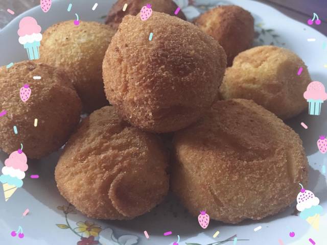 Goreng hingga berwarna keemasan, dengan api kecil aja ya, kalo gede ntar dalemnya ga mateng. Dan roti harus terendam minyak.