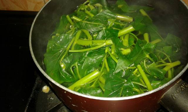 Rendam kangkung sebentar tambahkan garam secukupnya, gunanya jika ada hewan kecil atau telurnya yang luput dari pandangan kita bisa lepas dari daun & batang. Kemudian cuci bersih. Rebus air secukupnya, tambahkan sejumput garam, dan masukkan kangkung ketika air sudah mendidih, sekitar 5-8mnt supaya warnanya tetap hijau segar. Angkat, tiriskan.