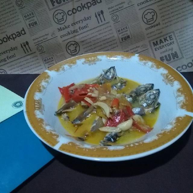 Panaskan minyak goreng secukupnya. Tumis bawang putih dan bawang merah sampai agak layu. Masukkan cabe merah dan cabe rawit, tumis sampai matang. Masukkan air, biarkan mendidih. Tambahkan santan, aduk-aduk supaya santan tidak pecah sampai mendidih. Masukkan ikan, biarkan beberapa saat. Masukkan tomat. Angkat.
