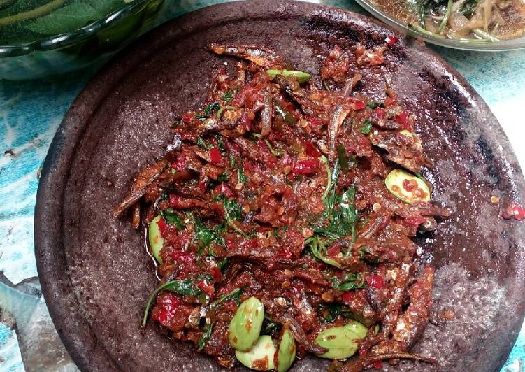 5. Masukkan kemangi, pete dan terakhir masukkan teri