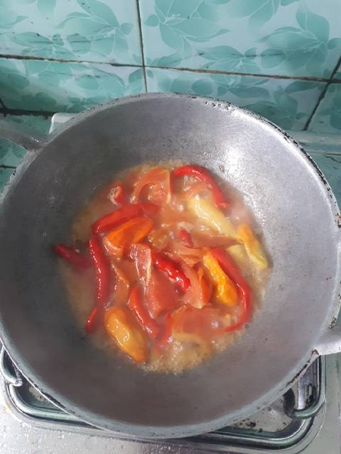 Goreng bawang putih yg sudah diiris" jangan terlalu tipis / tebal ya bund,yg sedeng sedeng saja😚