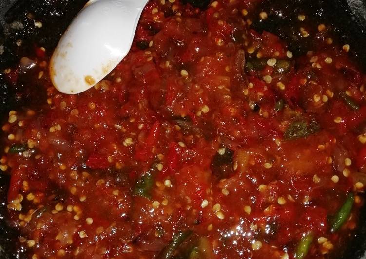 Ulek smua ny jadi satu, boleh smpai halus boleh agak kasar..taraaaa sambel kulupan siap di nikmati
