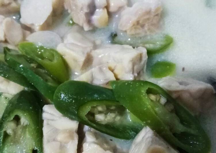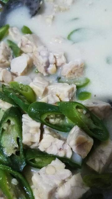 Lalu masukan Tempe aduk,masukan air,santan, bumbui garam gula Dan penyedap sesuai selera