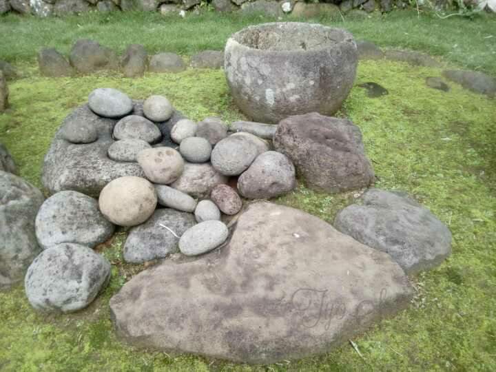 2 buah Batu berbentuk tugu dengan Batu Lumpang dan Batu Dakon beserta batuan bulat di desa datar, kecamatan Sumbang ini di tengarai adalah peninggalan dari masa Megalitikum.
