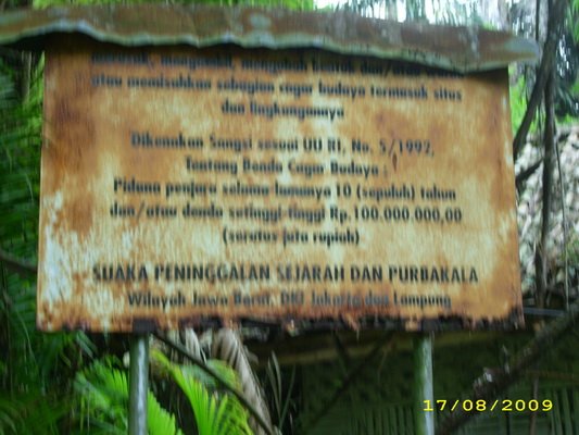- SANGHYANG BATU DATAR sebanyak 2 buah, berukuran tinggi ± 120 Cm. Dan lebar ± 170 Cm. Diperkirakan Batu tersebut merupakan Pintu Gerbang. - BATU MERIAM, sebanyak 2 buah dengan ukuran Panjang ± 110 Cm. - BATU JAMBANGAN AIR /JAHAS, ada 3 ( tiga ) Buah yang memiliki ukuran yang berbeda, yakni :