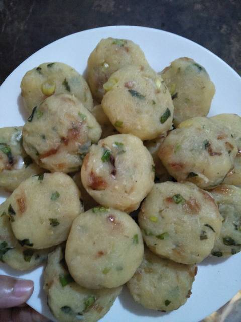 Bahan : 650gr kentang yg sudah dikupas,potong2 dan kukus hingga lembut. 1batang daunbawang,iris. 2batang seledri,iris.2sdm bawangmerah goreng,5siung bawangputih,iris,goreng.lada,garam,kaldububuk