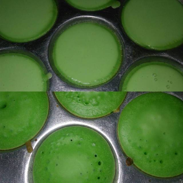 Panaskan cetakan / teflon, apinya kecil ya, lalu tuang adonan serabi, biarkan bergelembung jika ingin atasnya berpori maka tutup setelah bergelembung, jika ingin atasnya mulus menul langsung tutup adonan setelah dituang, dan biarkan matang merata, angkat, lakukan sampai adonan habis, sajikan bersama kinca