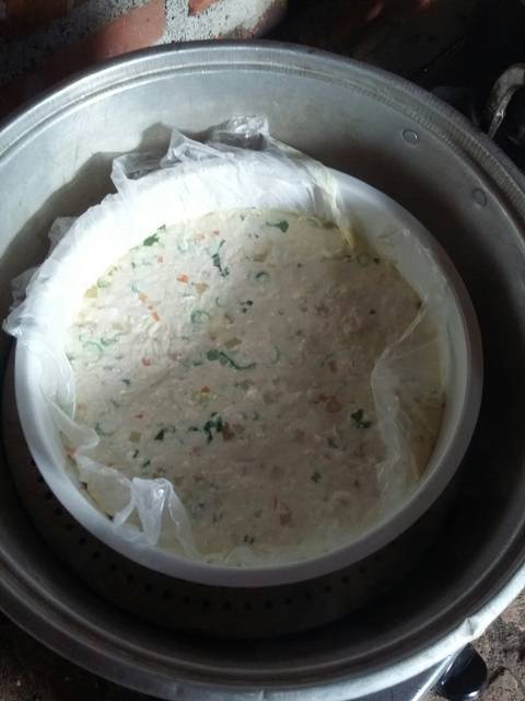 Tuang dan ratakan adonan kedalam loyang lalu kukus hingga matang kurang lebih 20 menit