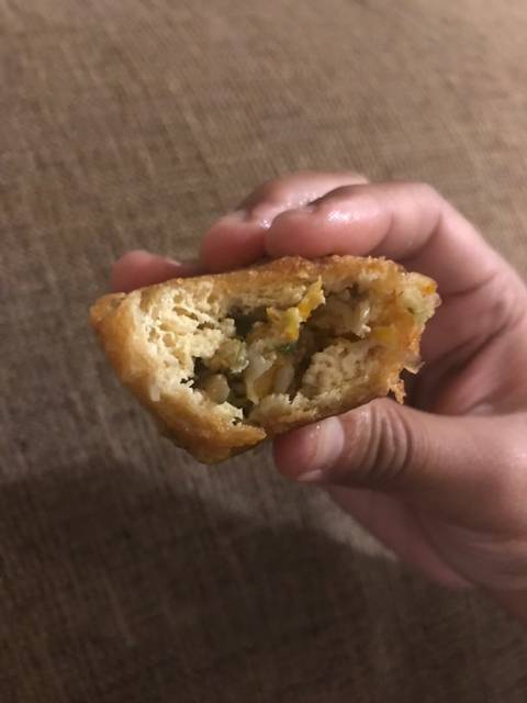 Masukkan adonan ke dalam tahu hingga penuh. Lakukan hingga adonan habis