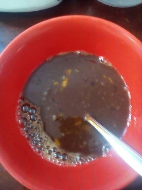 Masukkan kecap, saus, garam, penyedap, kaldu jamur dalam Telur.