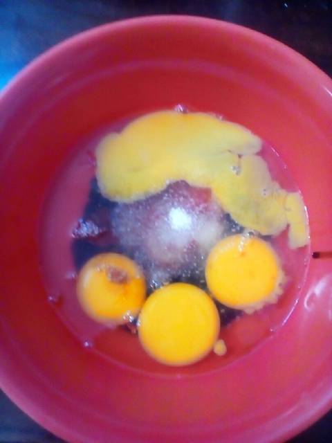 Panaskan minyak. Masukkan Telur. Bolak balik.