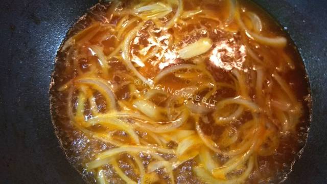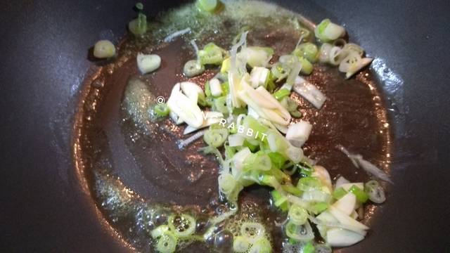 Tuangkan air + minyak wijen, masak dg api sedang hingga air sedikit menyusut dan mengental