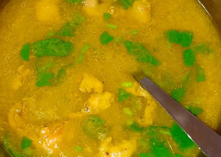 Hasil tumisan masukkan ke dalam rebusan tetelan ayam dan tambahkan air
