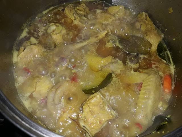 Tambahkan air secukupnya, gula, garam, kecap dan masak sampai mendidih dan beberapa saat. Kemudian tambahkan santan sesuai selera (sy hanya pake separo bungkus kecil kara karena tidak suka terlalu kental). Masak sampai empuk dan tes rasa.