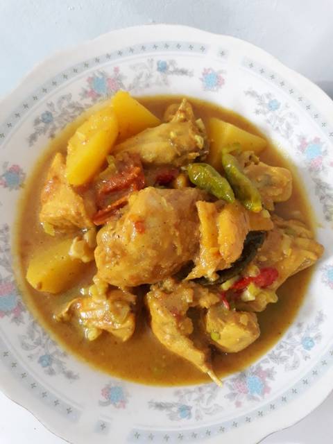 Lalu masukkan ayam dan air secukupnya. Beri garam, gula, kecap, penyedap sedikit. Tutup dan biarkan hingga matang, dan kuah sedikit berkurang.