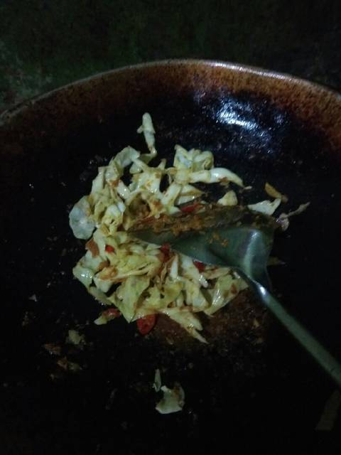 Tumis semua bumbu, jika sudah tercium harum masukkan kubis, tongseng sebentar, lalu masukkan gurita yang telah dipotong.