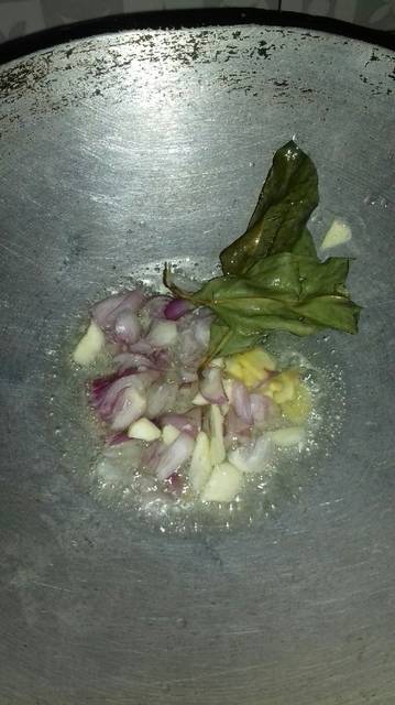 Masukan bawang merah & putih jahe dan daun salam, aduk hingga keemasan.