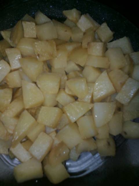 Goreng semua kentang setengah matang, angkat tiriskan.