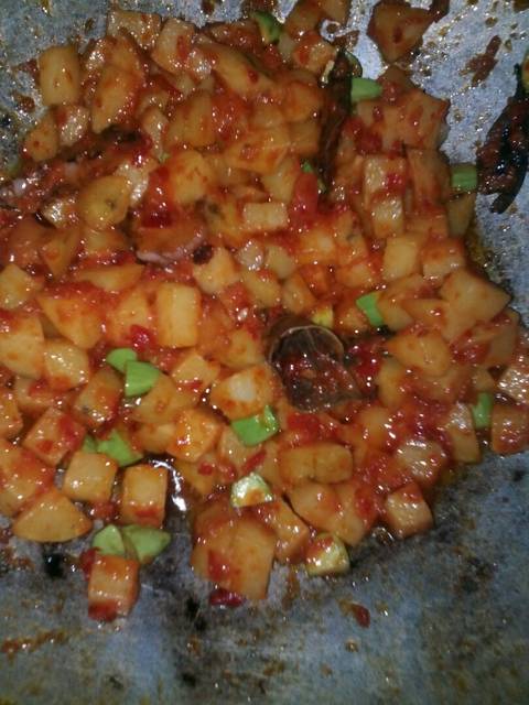 Panaskan minyak tumis bumbunya, setelah harum masukkan pete dan kentang yang sudah tadi digoreng